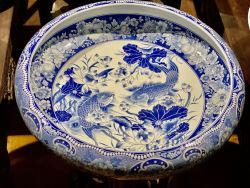 Ang vuốt tay Song ngư bách hoa chàm được vuốt, vẽ tay có kích thước phi 62 chiều cao 18 cm