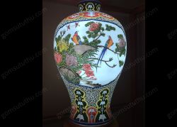 | Mô tả: | Đèn dáng đùi dế vẽ sen, hạc phù dung, trĩ Kích thước : 34*59 |