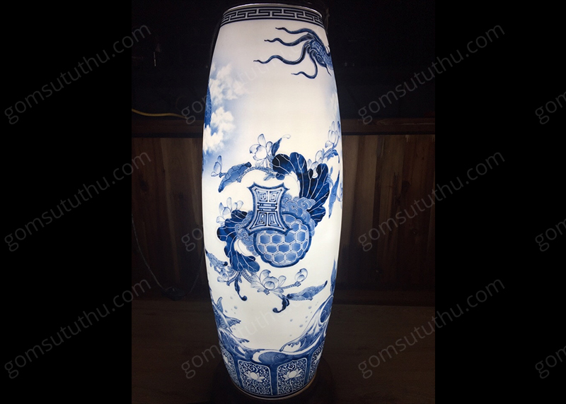 | Mô tả: | Đèn dáng trụ cá chép hóa rồng Kích thước : 22*58 |
